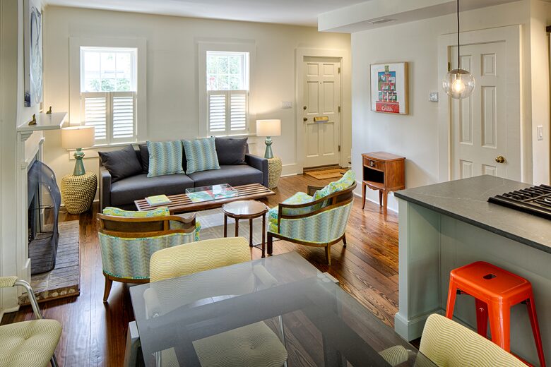 Immerse yourself into an equally charming and stylish townhouse residence, filled with light airy ambiance, located in the downtown Historic District. Enter into this 1050-sq ft Robin-egg powder-blue wonder, with its vanilla custard-colored walls and pecan-stained hardwood flooring throughout...the home just oozes vintage-modern Southern-chicness. The living room offers guests comfortable sofa and chair seating combination near the fireplace, making it perfect for reading and relaxing, along with a small TV with upgraded cable. The boutique kitchen and small dining room flow together into the living area, allowing and open-space for socializing and enjoying meals or quick bites. For convenience there is a small half-bath off the living room for freshening up. Choose to slumber in either of its two lovely bedrooms - a Master Suite with King Bed and a Guest Room with Queen Bed, that share a full bathroom. Outside the residence there is an outdoor courtyard complete with a Banana Tree to grill out and enjoy warm Southern evenings; and enjoy access and views to Crawford Square park. In addition, within walking distance (10-minutes or less), one can be in the heart of Savannah's best - all the squares, River Street, Forsyth Park, antique shopping, SCAD and restaurants/bars. Residential amenities include all organic linens, beds/mattresses and sofa, along with cleaning products.
