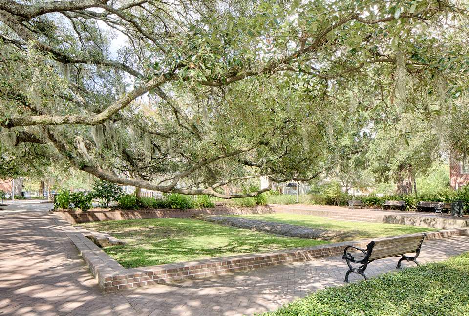 View of Crawford square, one of the beautiful squares that make Savannah so special!