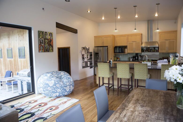 This house is close to downtown Jackson as well as right at the edge of the forest. Everything you need to have a wonderful stay in Jackson hole.The kitchen was the best of any home I have ever stayed in, and I love to cook. The back deck with hot tub and BBQ looks up at the beatuiful hills where deer were visiting every morning and evening. I loved the steam bath after a long day on the hill.The drive up to the mountain is a quick 15 min. Matt was very responsive with any questions we had. highly recomended home for your mountain vacation.”