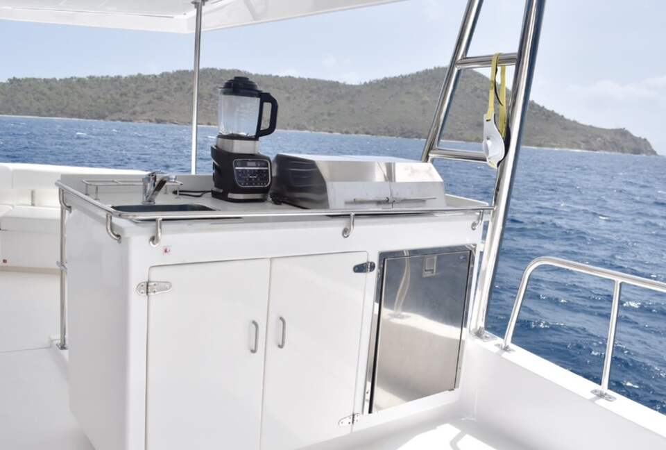 • Guests may have the option to upgrade their charter and pay an all-inclusive cost per person per day which includes an onboard chef, meals, and local beverages (beer and rum). Please be aware that the all-inclusive experience reduces the maximum occupancy from 8 guests to 6 guests. You can inquire with the ThirdHome team for more details.