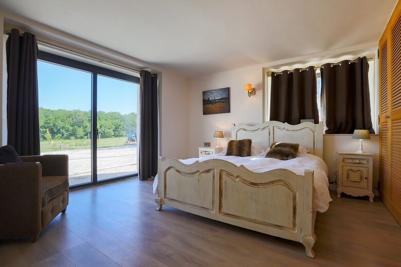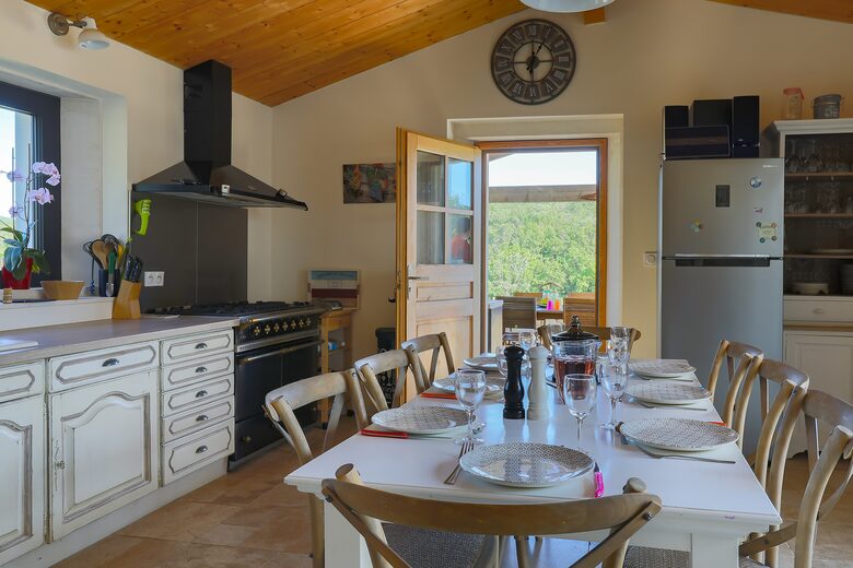 The owners have done a wonderful job restoring this ancient farmhouse. With 4 BRs, each with full bath, it would be great for a family or group. However, I was alone and loved it -- just never used the 2nd level which is just the three guest rooms. Alyerac (not to be confused with Alleyrac) is so rual as to have no stores or gas stations, which you can find in nearby La Begude de Mazenc. There are many adorable villages to explore -- Le Poet-Laval, Dieulefit and Tauligan are must see. Also the three castles in Montelimar, Grignan and Suze-la-Rousse. There is a cool prison tower in Crest, and a short distance from that an amazing Michelin rated restaurant called Garenne in Livron-Sur. Very close to the house are the picturesque ruins of Prieure. Worth a stop on way toBordeaux is Eglise de Comps. The farm is surrounded by oak and truffle groves and lavender fields. Beware of unpaved roads that have only names and not numbers. Some cars will not make some of those. (Leaving the farm turn left not right out of the gate. The near by "shortcut" your navigation might suggest called Ancient Aleyrac Road is treacherous and very rocky.) The pool/spa is great for after a day of hiking or touring. The kitchen is well equipped and there is an outdoor BBQ. Although this is a rural retreat, it is luxurious and idealic. Highly recommended for an off the beaten path experience.”
