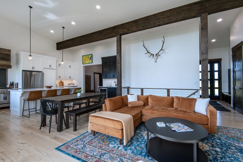 Nestled in the serene beauty of Victor, Idaho, Mustang Mountain Lodge serves as a luxurious basecamp for exploring the wonders of the Grand Teton region. This brand-new home exudes mountain charm and comfort, offering an expansive 3,250 square feet of space designed for families and groups seeking both adventure and relaxation. With breathtaking views of the sunset over the valley and the iconic Grand Teton framed perfectly by the kitchen windows, you’ll find yourself immersed in nature’s grandeur from the moment you arrive.