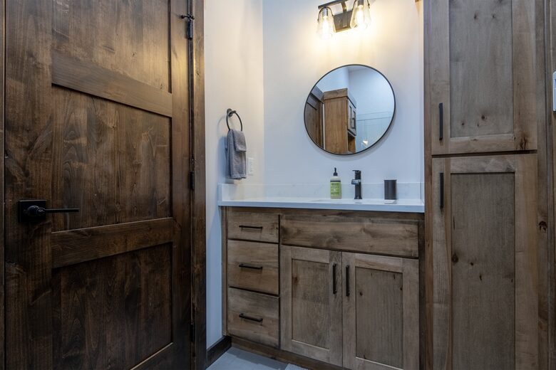 Inside, the lodge features six bedrooms, ensuring comfort for up to 12 guests. Whether you’re settling into the king-sized master suite, one of the four queen bedrooms, or the charming bunk room perfect for younger travelers, every space offers a cozy retreat after a day of outdoor exploration. The home boasts four modern bathrooms, allowing ample space for everyone to unwind. For those who need to stay connected, two designated office spaces provide a quiet sanctuary with high-speed wireless internet, ensuring you can balance work and leisure seamlessly.