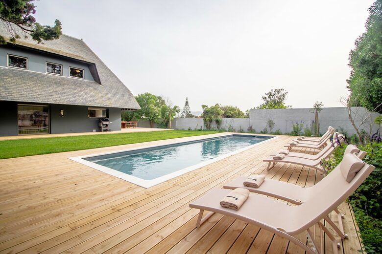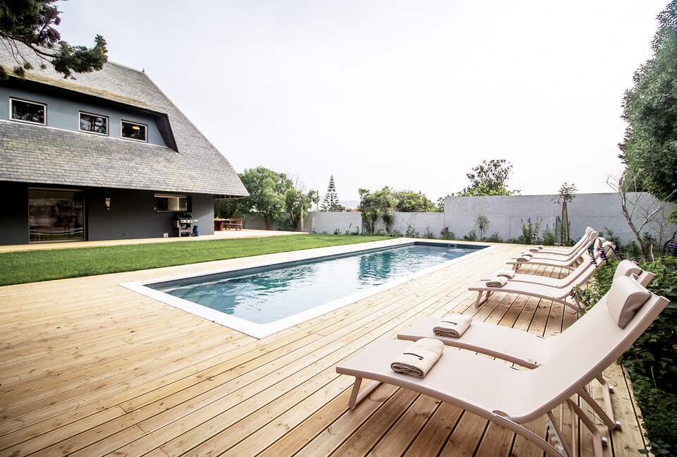 Private gardens and swimming pool Praia Grande beach view Serra de Sintra