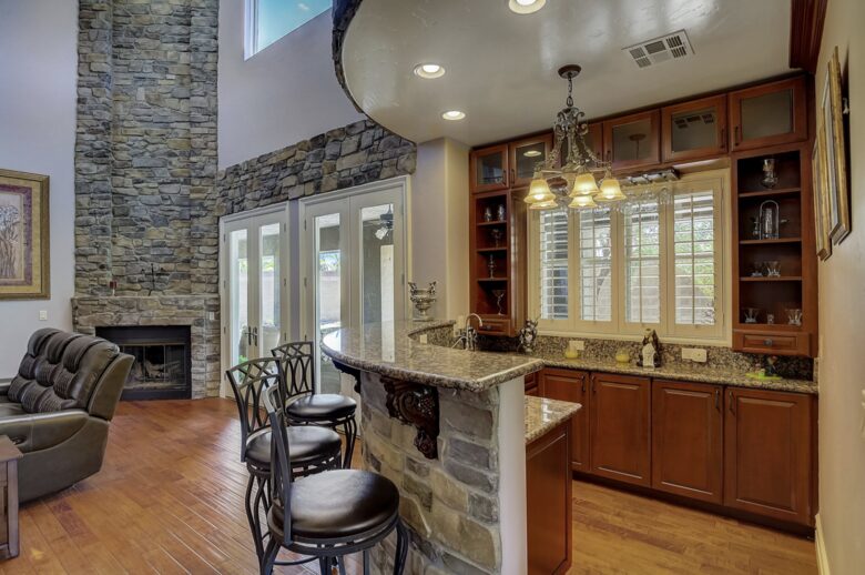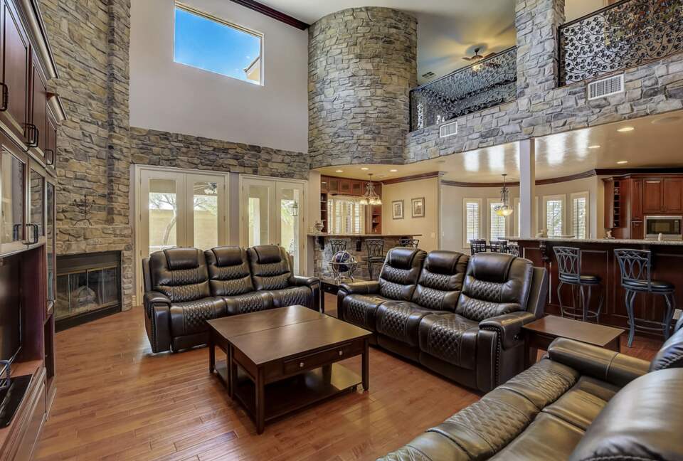 Enormous home, very suitable for large groups. The main living area has an attractive large living room, bar area, large kitchen "nook" (great for playing family board games), kitchen, and dining area; the attractive outside area has multiple seating areas, outdoor cooking area, enjoyable pool and hot tub. Plenty of bedrooms and bathrooms for a large group. The owner provided generous welcome snacks. Here and there the cleaning could be improved and some of the furnishings could use some TLC, but it is still a very impressive property.”